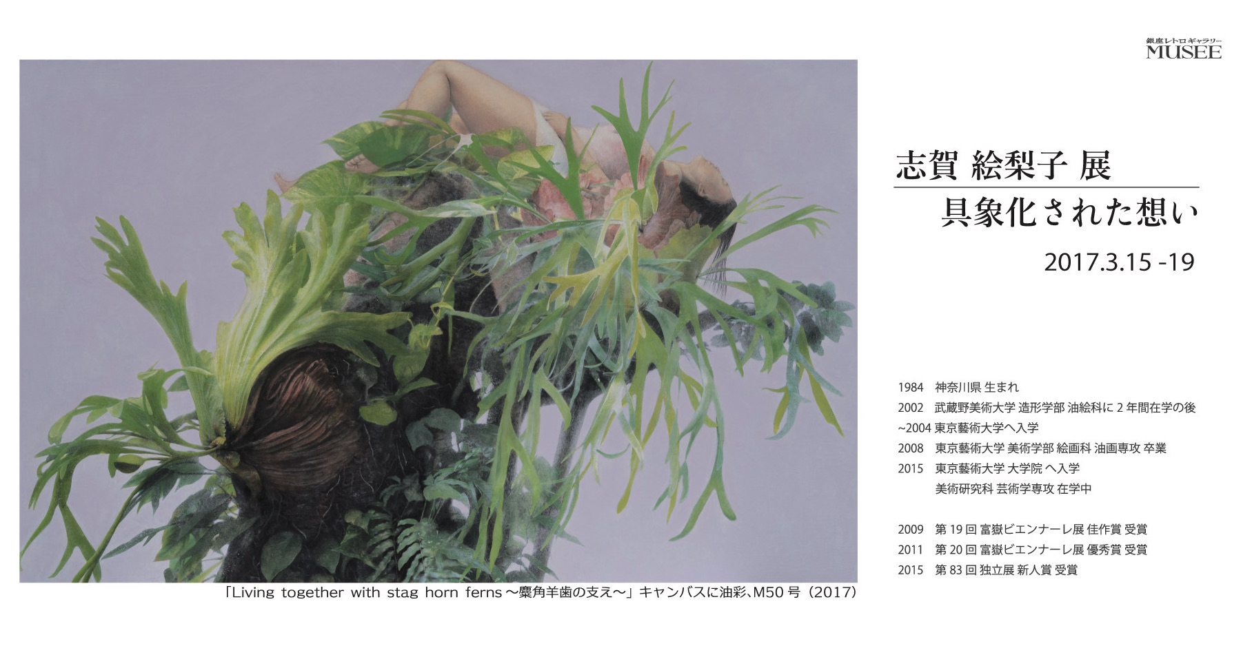 銀座レトロギャラリーMUSSE(ミュゼ)では、東京藝大の修士課程へ進み、独立美術協会(独立展)で、2015年新人賞を受賞するなど、着実に歩みを続ける志賀絵梨子を紹介します。どうぞご期待下さい。