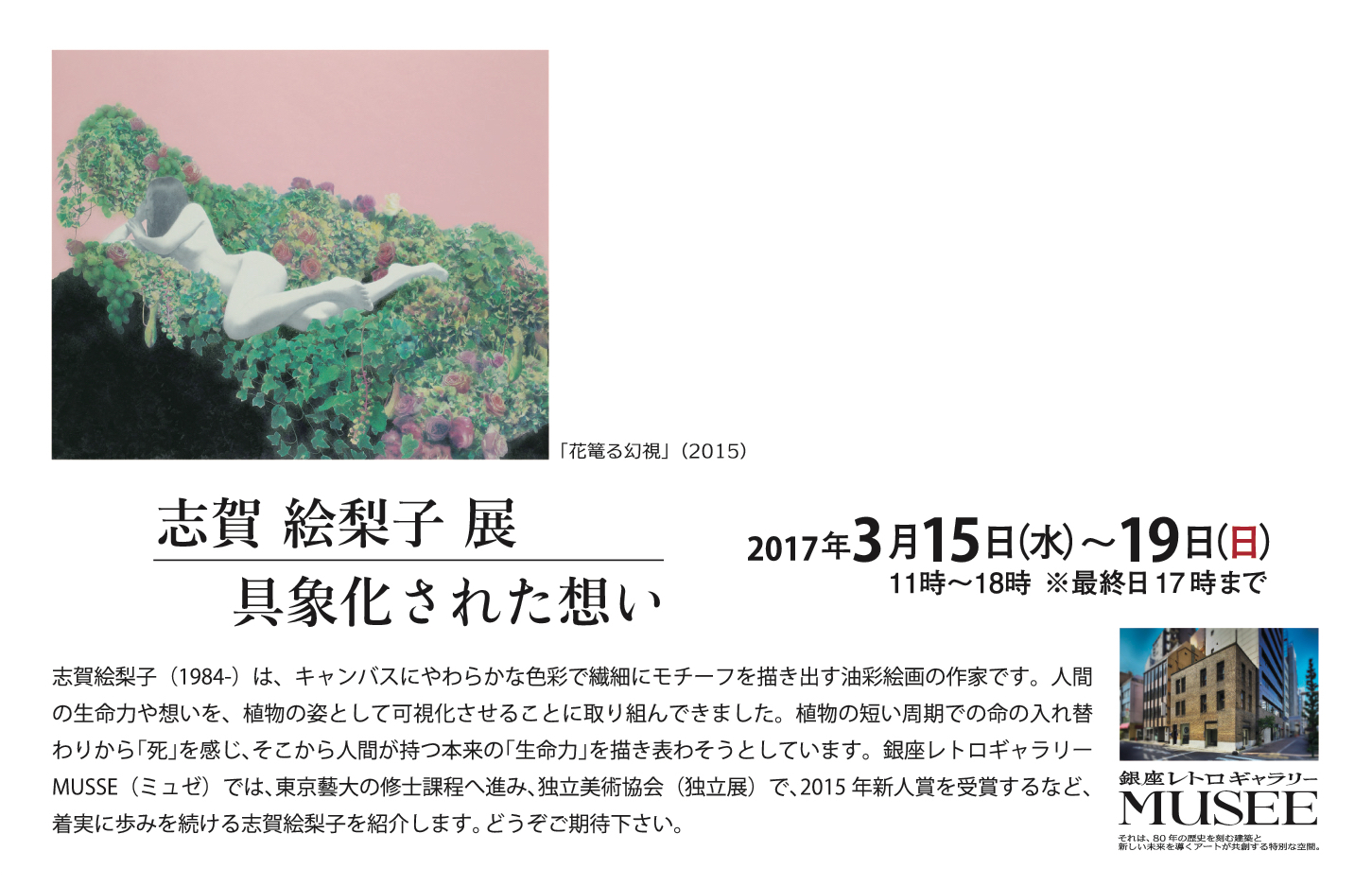 2017年3月15日(水)〜3月19日(日)11時〜18時 ※最終日は17時まで